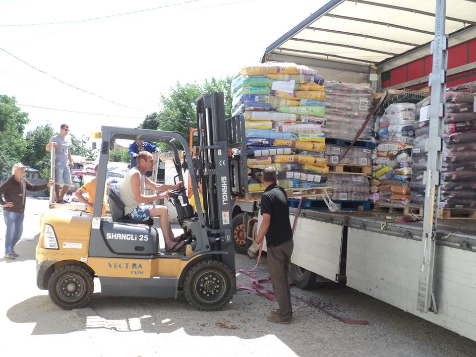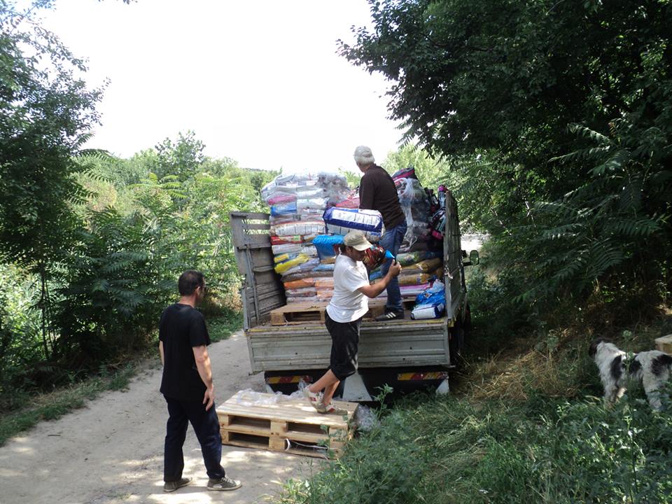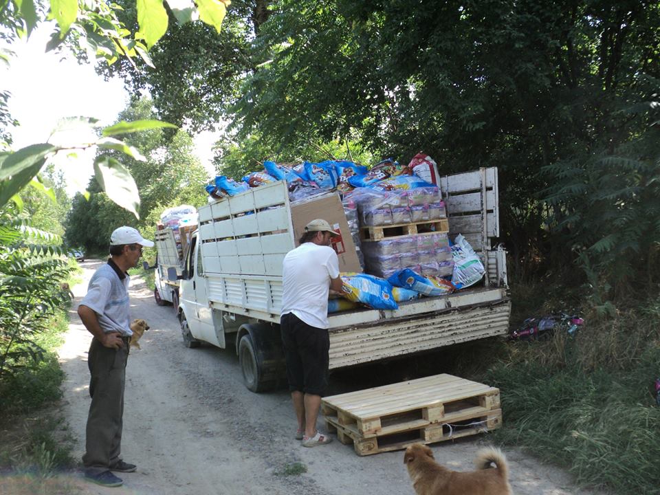 Neli was ontzettend blij dat er op 28 juni 2015 weer een vrachtwagen aankwam met honderden kilo's voer. Zodat ze de eerstkomende maanden weer vooruit kan. Al het voer van Neli's honden was op.