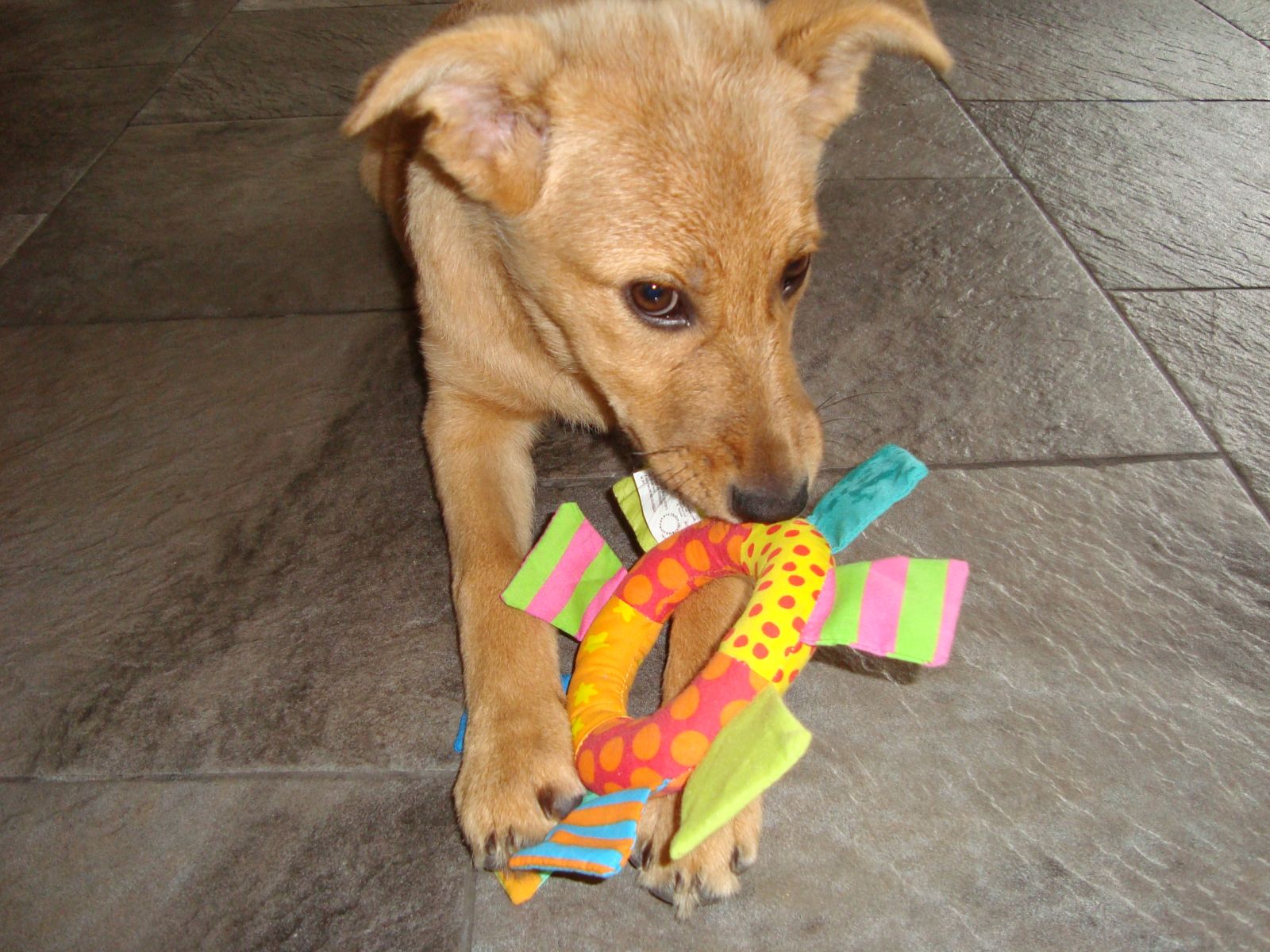 Zij zijn stapelgek op mij... natuurlijk!!!! Hoe kan het ook anders. Ik ben heel lief en zij zorgen ook goed voor mij. Ik heb het prima naar mijn zin. We spelen veel samen, gaan er veel op uit. Naar het bos en naar het strand maar ook natuurlijk de kleinere blokjes om. Heerlijk vind ik dat, ik kijk mijn ogen uit naar al die bewegende blaadjes, vlinders, vliegen... allemaal reuze interessant. Onderweg takjes oppakken vind ik een leuke bezigheid, ik stop ze in mijn bek en neem het mee.