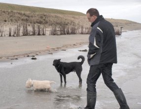 Als echte Roemeense Zeeuw gaat Sep (samen met Ezra, zijn kleine grote broer) regelmatig naar het strand. Ook daar is het inmiddels zo vertrouwd dat hij, wel met enige schuchterheid, hondenvrienden maakt.