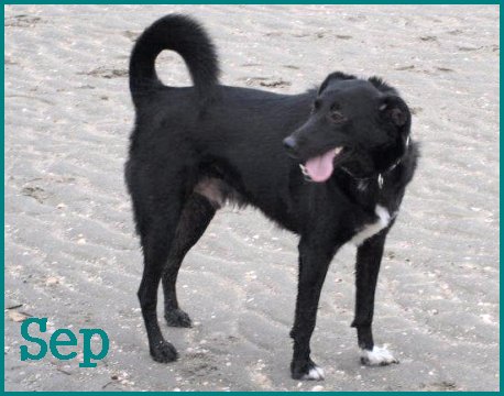 Sep was een bijzonder angstige hond toen hij hier kwam. Zelfs zijn behoeftes doen tijdens het wandelen, moest langzaam aangeleerd worden. Alle geluiden enz. vond hij eng.